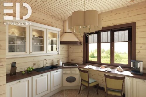 Дом из оцилиндрованного бревна интерьер кухня гостиная