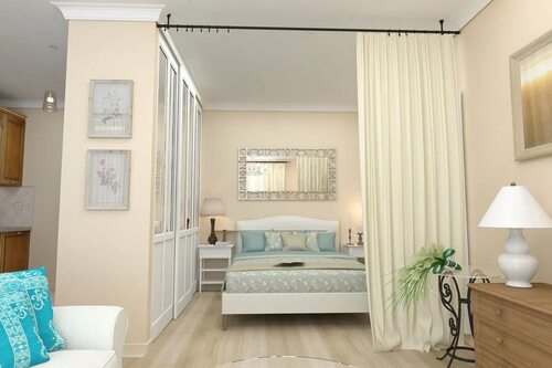 Другой вариант - использование тканевых перегородок для зонирования спальной зоны. Тканевые перегородки могут быть подвешены над кроватью или использованы в качестве отдельного элемента декора. Они создают ощущение уюта и комфорта, а также позволяют скрыть спальную зону от посторонних глаз.