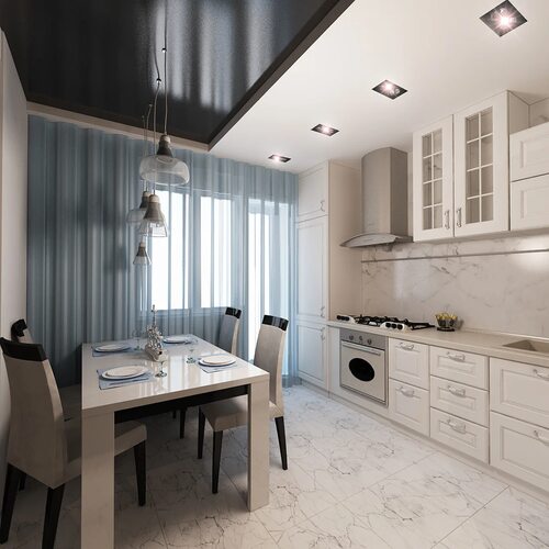 Кухня гостиная с 3 окнами