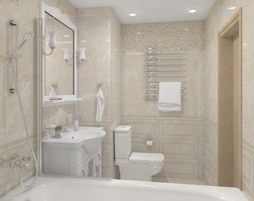 1. Использование светлой мозаичной плитки для создания акцентных зон в ванной комнате.