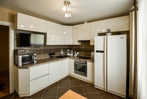 Преимущества угловой кухни с большим холодильником