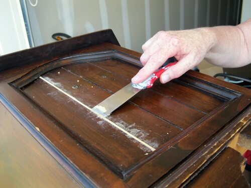 После подготовки поверхности можно приступать к нанесению шпаклевки. Равномерно нанесите шпаклевку на все дефекты поверхности мебели, такие как царапины, сколы и трещины. Подробный процесс нанесения шпаклевки показан на фото.
