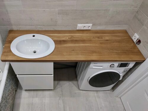 Дубовая столешница отличается прочностью, долговечностью и устойчивостью к влаге, что делает ее идеальным выбором для ванной комнаты. Кроме того, дуб имеет красивую текстуру и естественный оттенок, который придаст вашей ванной комнате особый шарм.