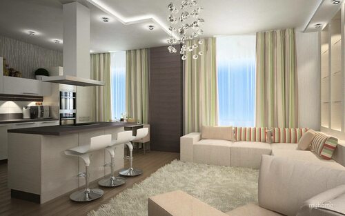 Один из популярных вариантов дизайна интерьера зала с кухней студия - это современный стиль, характеризующийся минимализмом, чистыми линиями и функциональностью. Фотографии в нашей подборке позволят вам увидеть различные варианты цветовых решений, расположения мебели и аксессуаров в таком интерьере.