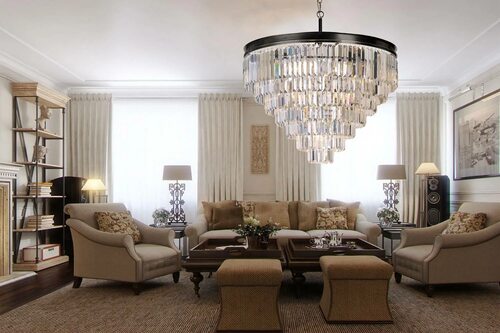 Люстры играют важную роль в создании уютной и стильной атмосферы в интерьере гостиной в классическом современном стиле. Они не только освещают помещение, но и служат важным элементом декора, подчеркивая элегантность и изысканность интерьера.