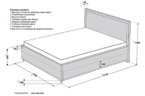 Кровать с подъемным механизмом 160х200 схема габаритов