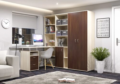 Благодаря разнообразию материалов и отделки, шкафы вместе с письменными столами могут быть адаптированы под различные стили интерьера, от современного до прованса или лофта. Это позволяет выбрать оптимальное решение для конкретного помещения и создать уютное и функциональное рабочее пространство.