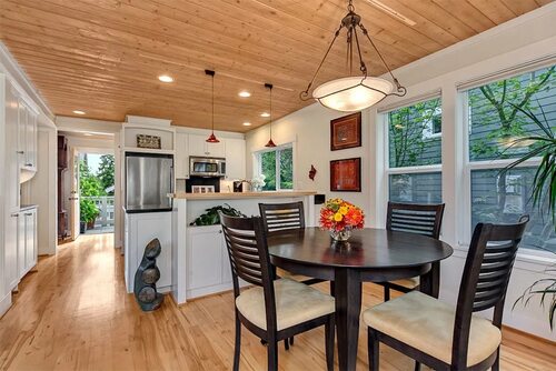 Маленькие одноэтажные дома часто имеют ограниченное естественное освещение, поэтому используйте большие окна, легкие шторы и зеркала, чтобы максимально осветить пространство и создать ощущение света и воздушности.