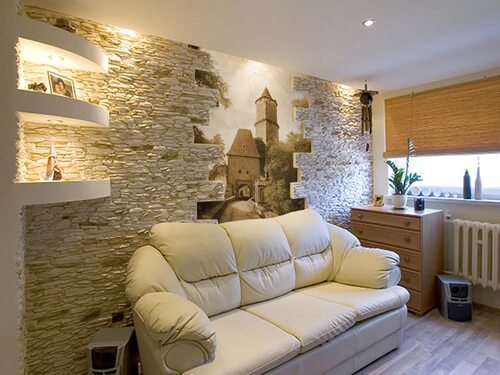 \"Дизайн стен в зале из камня\" (много фото в статье)
