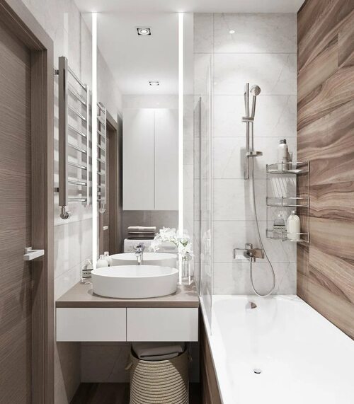 Одним из основных приемов в дизайне маленькой ванной комнаты является использование светлых оттенков. Светлые цвета визуально увеличивают пространство и делают его более светлым и воздушным. Белые, бежевые, светло-серые и нежные пастельные оттенки отлично подходят для небольших ванных комнат.