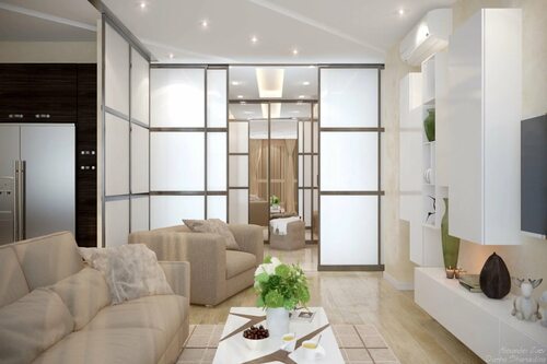 Раздвижные перегородки отлично подходят для студий, где важно максимально эффективно использовать пространство. Они позволяют легко изменять конфигурацию помещения, создавая отдельные зоны для работы, отдыха или творчества.