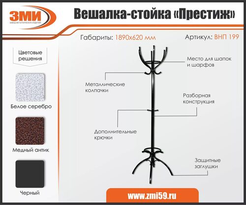 Напольная вешалка Престиж 8 - это функциональное и стильное решение для организации хранения одежды в вашем доме или офисе. Благодаря своей устойчивой конструкции и элегантному дизайну, она станет отличным дополнением к интерьеру любого помещения.