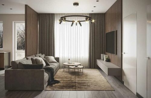 В 2022 году в интерьере гостиной в современном стиле актуальны нейтральные и приглушенные оттенки. Сочетание черного, белого, серого и приглушенных натуральных цветов создает спокойную и уютную атмосферу. Также популярными являются акцентные цвета, такие как бордовый, синий или зеленый, которые добавляют яркости и индивидуальности интерьеру.