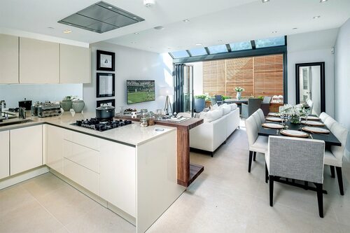 Один из популярных вариантов дизайна г образной кухни столовой - это современный стиль. Он характеризуется чистыми линиями, минималистичным дизайном и использованием современных материалов. Фотографии современных интерьеров помогут вам понять, как можно организовать пространство в этом стиле, создавая функциональные рабочие зоны и уютную обеденную зону.