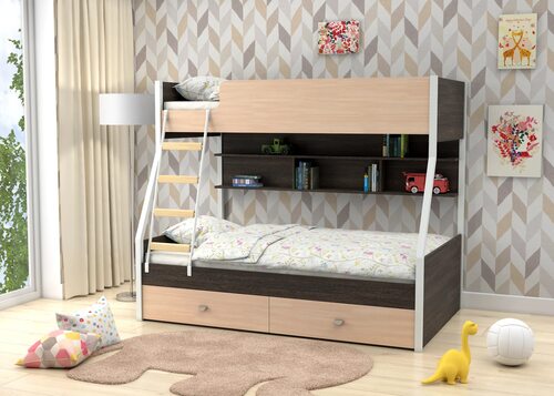 Кровать выполнена из высококачественных материалов, что гарантирует ее долговечность и надежность. Благодаря своей функциональности, она поможет максимально эффективно использовать пространство в детской комнате.