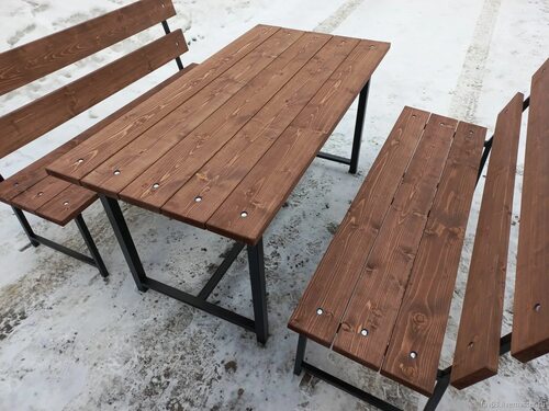 Ниже представлены фотографии различных вариантов комбинированной мебели \"стол и две скамейки в одном\".