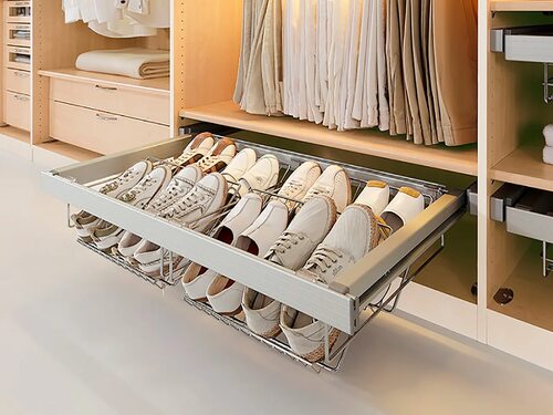 2. Выдвижные ящики. Такая система позволяет компактно разместить обувь и легко найти нужную пару. Фото 2.