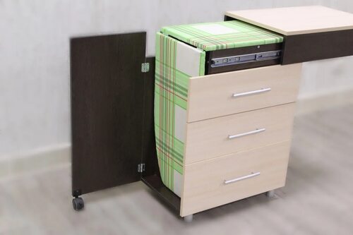 Комод-рукодельница с гладильной доской предлагает идеальное решение для тех, кто имеет ограниченное пространство в своем доме или квартире. Она позволяет экономить место, объединяя в себе несколько функций. Благодаря удобной гладильной доске, которая легко раскладывается и складывается, можно быстро и удобно готовить ткани к шитью, не занимая лишнего места в помещении.