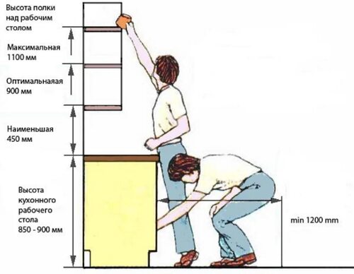 Эргономика высота верхних кухонных шкафов