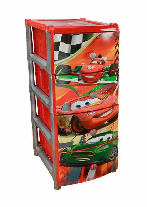 Комод декор 4 ярус Тачки голубой в95*ш38*г47