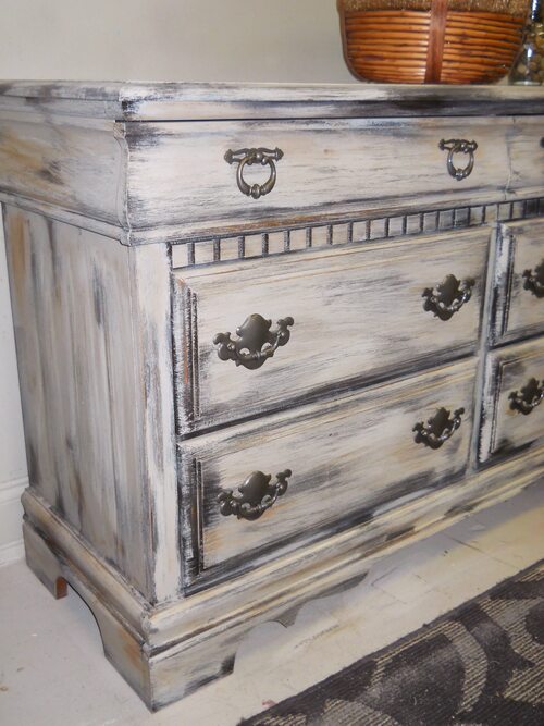 Патина - это основной инструмент для придания мебели винтажного вида. Нанесите патину на поверхность мебели, используя различные техники, чтобы создать эффект старения и потертостей.