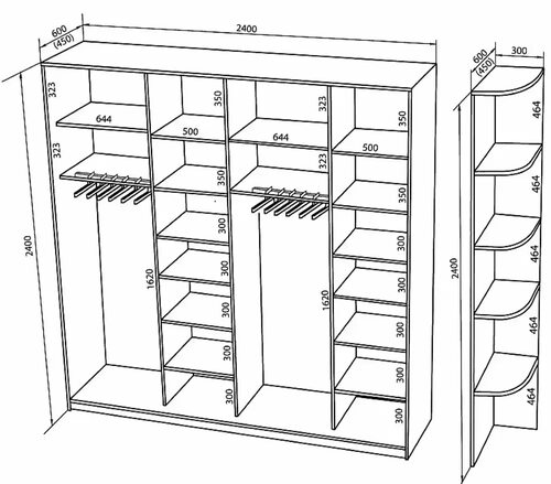 Стандартные размеры гардеробных шкафов могут варьироваться в зависимости от производителя, но обычно они предлагают несколько основных вариантов: