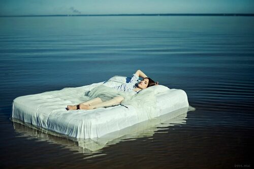Фотосессия на матрасе на воде