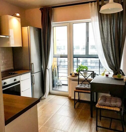 Кухня современная с балконом