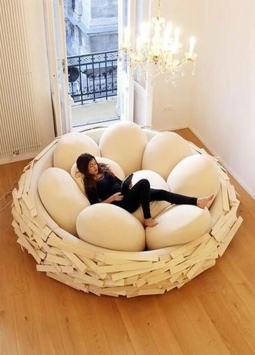 Кресло в виде гнезда отличается не только своим уникальным дизайном, но и удобством. Оно идеально подходит для отдыха и релаксации, обеспечивая оптимальную поддержку тела.