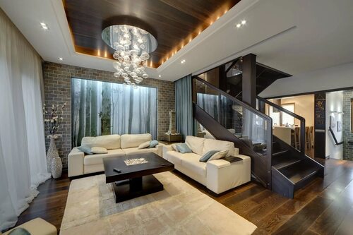 Интерьер гостиной в доме в современном стиле представляет собой сочетание современных тенденций дизайна и уютной атмосферы. Этот стиль отличается чистыми линиями, минималистичным декором и функциональностью. Гостиная в современном стиле может быть оформлена в различных цветовых решениях, от нейтральных пастельных оттенков до ярких контрастных комбинаций.