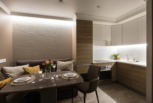 Дизайн кухни-гостиной 14 м2