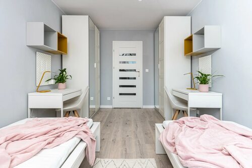 В спальне одинаковая мебель может добавить спокойствия и уюта. Разместите одинаковые ночные тумбочки и комоды по обе стороны от кровати, чтобы создать гармоничный и сбалансированный интерьер.