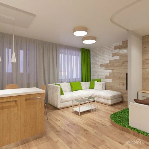 Экономичный дизайн кухни гостиной также предполагает оптимальное использование каждого квадратного метра. Мебель с удобными функциональными элементами, компактные решения для хранения и множество открытых полок помогут сделать пространство более удобным и организованным.