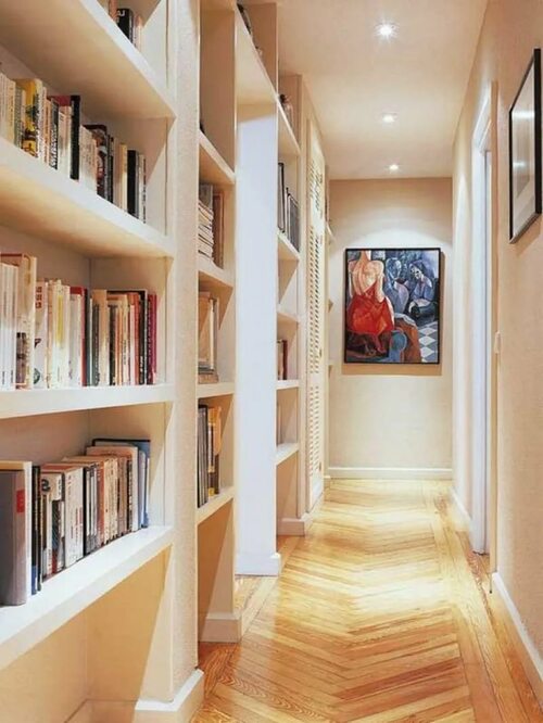 Узкий коридор может стать прекрасным местом для хранения книг, если использовать его пространство максимально эффективно. Книжные полки в узком коридоре могут стать не только функциональным элементом интерьера, но и интересным дизайнерским акцентом.