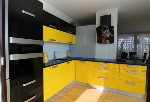 Желтая кухня с темной столешницей сочетает в себе не только стиль и красоту, но и функциональность. Яркий цвет поднимает настроение, а темная столешница практична и легко поддается уходу. Это идеальное решение для тех, кто ценит уют и комфорт в своем доме.