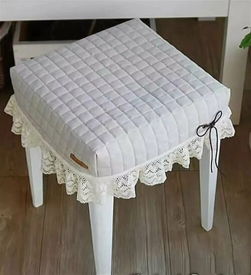 При необходимости уберите лишние нитки и отрежьте запасы ткани. Ваш чехол для табурета готов!