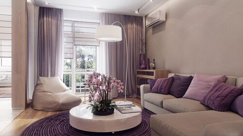 Серый, фиолетовый и бежевый - это универсальные цвета, которые могут создать уютную и стильную атмосферу в интерьере. Они могут быть использованы как основные цвета или в качестве акцентов, добавляя визуальный интерес и глубину.