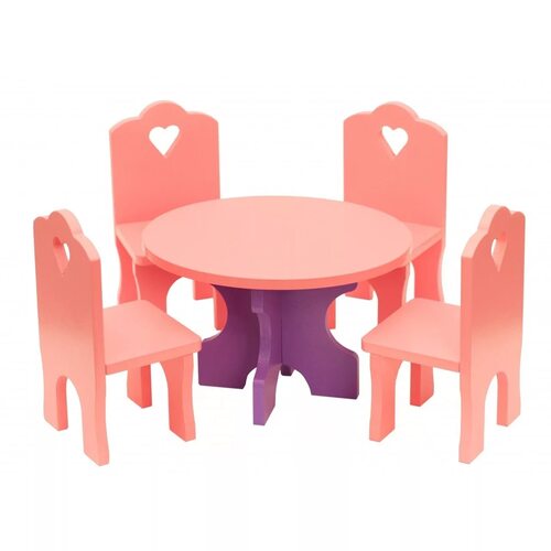 Кукольный стол со стульями - прекрасное дополнение к кукольной мебели. Этот набор позволит создать уютное пространство для кукольных персонажей, где они смогут проводить время за играми и чаепитиями.