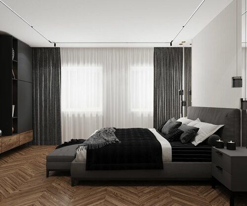 Черно серая спальня