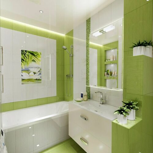 Салатовый цвет в ванной можно сочетать с различными оттенками, такими как белый, серый или даже деревянные элементы. Это создаст гармоничный и стильный образ ванной комнаты.