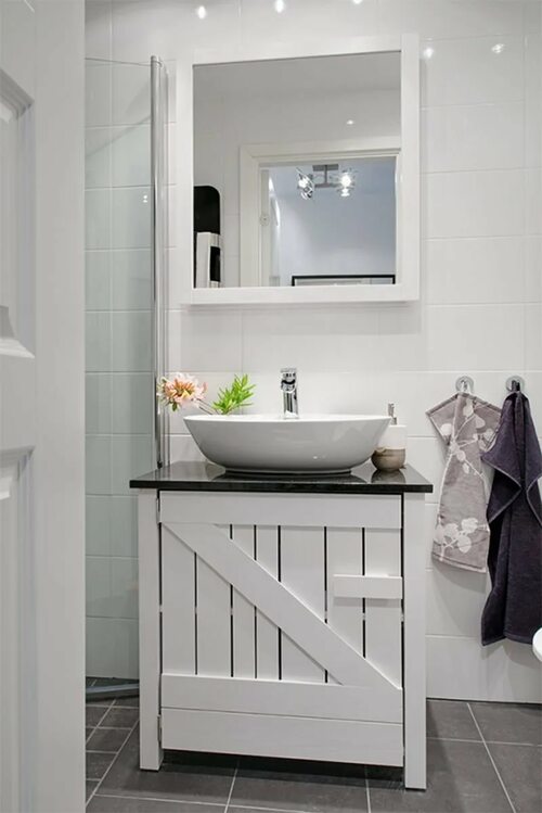 Одной из ключевых особенностей скандинавского стиля является использование натуральных материалов. При выборе тумбы под раковину в этом стиле отдайте предпочтение дереву, предпочтительно светлых оттенков, которые придают интерьеру воздушность и светлоту.