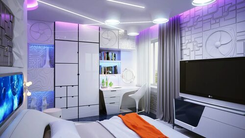 Комната для подростка - это место, где они проводят большую часть времени, поэтому важно, чтобы она отражала их личность и интересы. Один из популярных стилей для подростковой комнаты - хай-тек. Этот стиль отличается современным дизайном, использованием технологий и функциональностью.