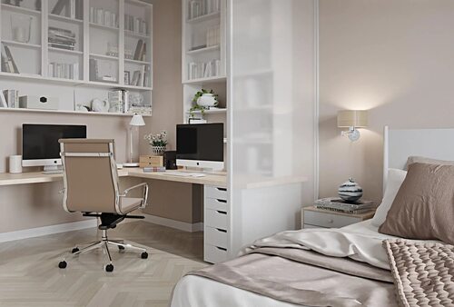 Угловая рабочая зона в спальне может стать прекрасным дополнением интерьера, обеспечивая комфортное пространство для работы, чтения или творчества. Этот уголок может быть оформлен в соответствии с общим стилем комнаты, а также учитывать индивидуальные потребности и предпочтения хозяев.