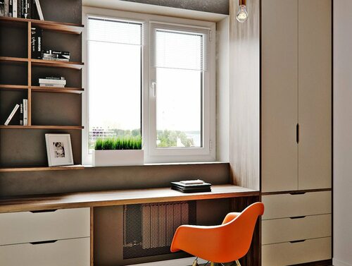 Столешница под окном в комнате с полками может стать удобным и функциональным элементом интерьера. Независимо от размеров комнаты, такое решение позволяет эффективно использовать пространство под окном, создавая уютное рабочее место или дополнительную полезную зону.
