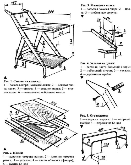 Перед тем как приступить к изготовлению столика, необходимо иметь подробные чертежи. Ниже представлены чертежи, которые помогут вам сделать столик на колесах своими руками.