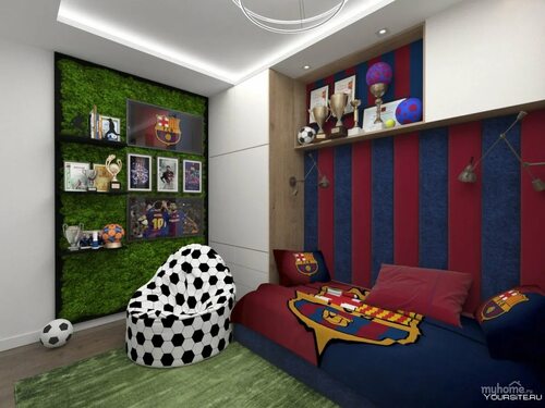 Помимо этого, мебель и текстиль также могут быть выполнены в футбольной тематике, что поможет создать завершенный образ комнаты.
