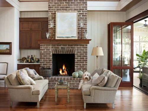 Одним из самых популярных вариантов дизайна гостиной с камином из кирпича является классический стиль. Кирпичный камин в сочетании с мягкой мебелью и натуральными материалами создает атмосферу старинного усадебного дома. Фотографии таких интерьеров помогут вам выбрать подходящий стиль и цветовую гамму.