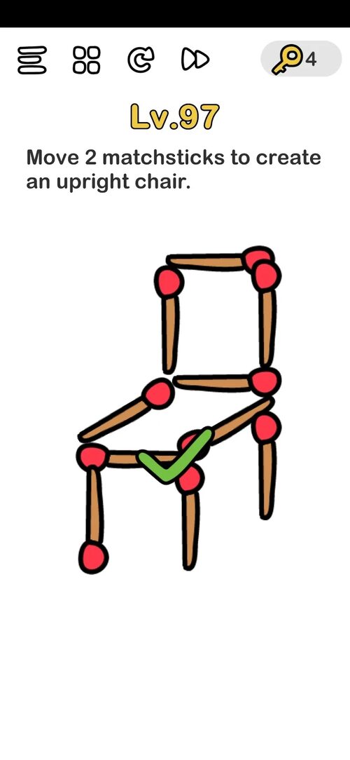 И вот результат - у вас получился стул с прямой спинкой всего лишь из двух спичек! Поздравляем, вы успешно справились с этой увлекательной головоломкой.