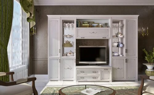 Один из популярных вариантов стенок для гостиной включает элементы классического стиля, такие как изящные детали, резные узоры и теплые оттенки. Эти стенки создают атмосферу уюта и роскоши, придавая гостиной особый шарм.