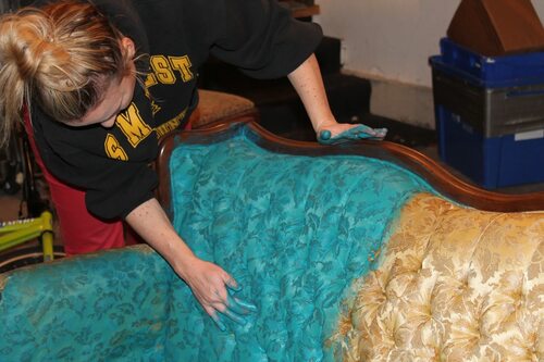 Перед началом покраски рекомендуется провести тестовое покрасочное пятно на незаметном участке мебели, чтобы убедиться, что выбранная краска подходит. После этого можно приступать к покраске всей мебели. На фотографиях ниже показан процесс покраски мягкой мебели.